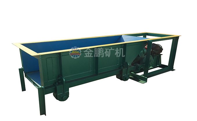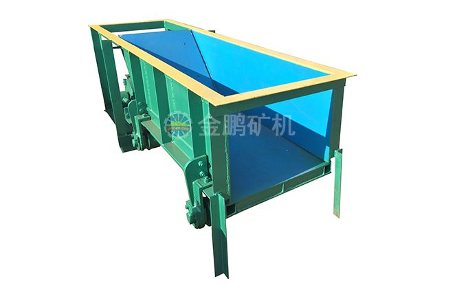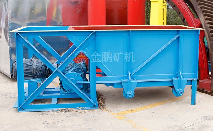 槽式給礦機設(shè)備一般安裝在料倉出料口下部,礦石落入槽體底部的漏板上,底部漏板設(shè)置在滾輪上,并通過偏心機構(gòu)使漏板與雙出軸的減速機相連,然后通過聯(lián)軸器與電動機相接。工作時,由電動機通過聯(lián)軸器帶動減速機,并通過偏心盤與設(shè)備在槽架底部和滾輪之間的漏盤一起往復(fù)直線運動,從而完成均勻給料。